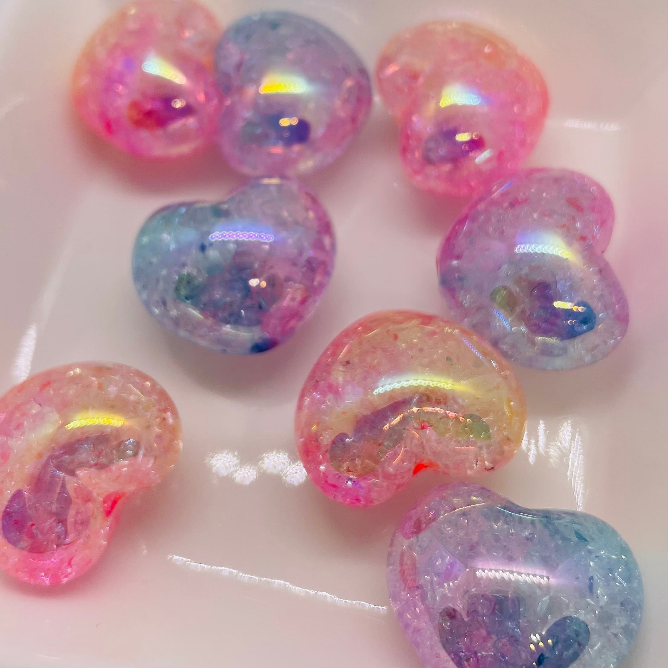 ぷっくり丸みのあるハート型の飾りビーズです。