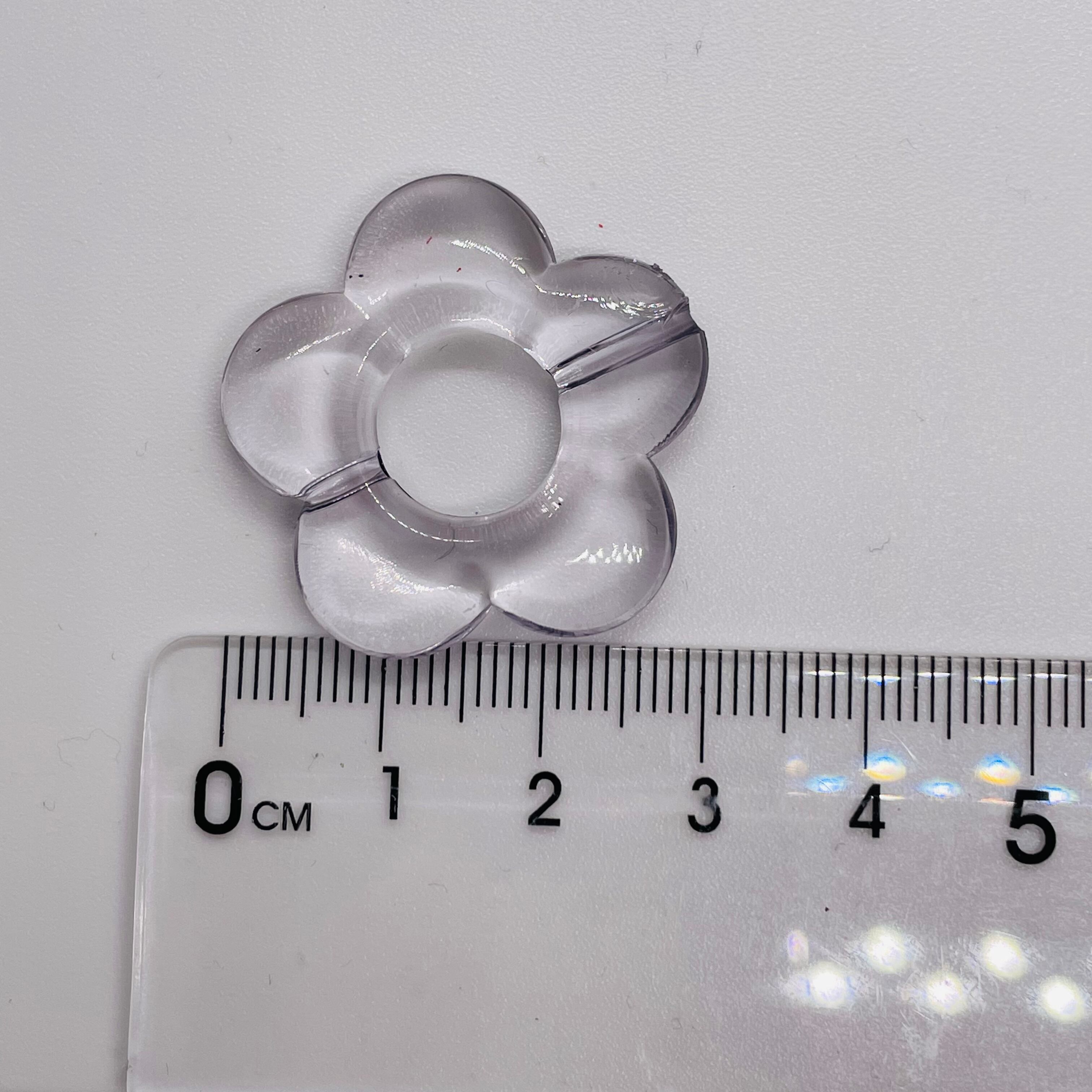 ぺたんこビーズ。真ん中のホール部分に6〜8mmサイズのお好きなカラーのラウンドビーズを入れることでオリジナルの大きめサイズのフラワービーズにすることができます。